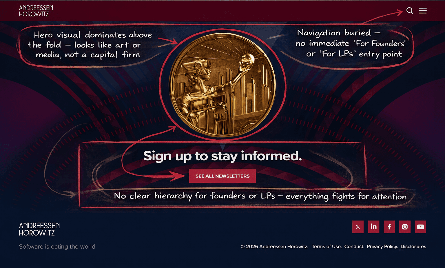a16z Homepage Feels Like Media, Not Allocator